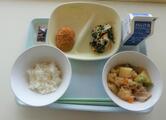 17日(金)給食の献立は、ごはん、牛乳、鶏肉の香味焼き、和風マカロニサラダ、まろやか豆乳みそ汁です。