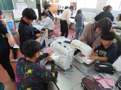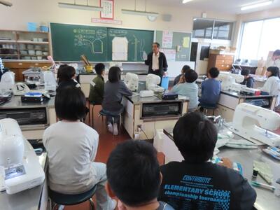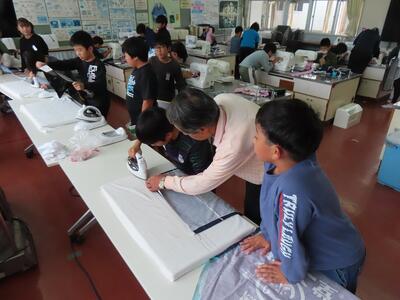 20日(月)2、3校時は5年1組のエプロン作りでした。そのため、ミシンボランティアさんが、6年生に続き5年生のためにも来てくださいました。ミシンをきれいに縫うためには、アイロンでの折り目がしっかりとしていることが大切という教えのもと、アイロンのかけ方を中心に指導と支援をいただきました。おかげで子どもたちはみな、スムーズに作業が進みました。