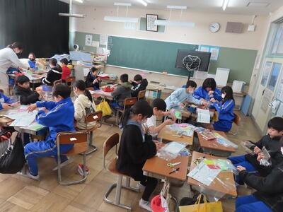 4年2組は、図工科の学習でした。「ゆめいろランプ」という単元で、4年生最後の作品作りを行っていました。どんなものができあがるか楽しみです。