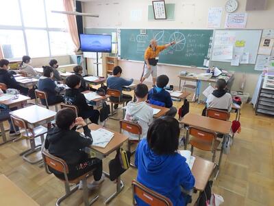 16日(月)3校時は、」GIGAスクール構想に伴う学校訪問があり、大田原市教育委員会から2名の指導主事が参観のもと、5年1組で英語科の研究授業を行いました。