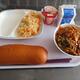 16日(月)給食の献立は、ごはん、ぎゅうにゅう、ハートのオムレツ、やさいサラダ、ハッシュドポーク、チョコクレープです。