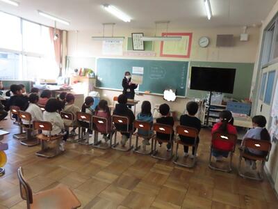 19日(木)朝の活動は、読み聞かせでした。読み聞かせをしてくださるのは、もちろん、まつぼっくりの会のみなさんです。