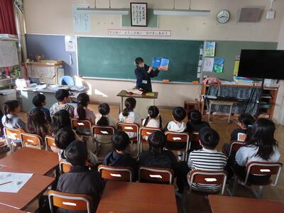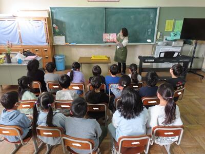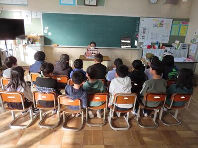 今朝の対象は、1、2、3年生でした。教室は、水を打ったように静まりかえり、全員が読み聞かせに夢中でした。