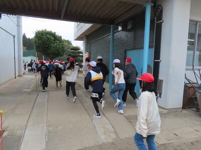 各教室では、避難の大原則である「おかしも」を守ることや机の下に逃げ込むことなどの事前指導を行い、訓練に臨みました。子供たちは、普段からの無言集合を実践して避難をしていました。