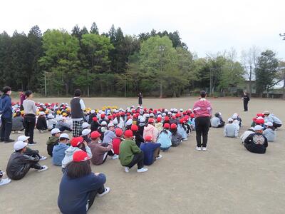 15日(水)1年生の下校時に小滝駐在所のお巡りさんが来てくれ、1年生にお話をしてくださいました。