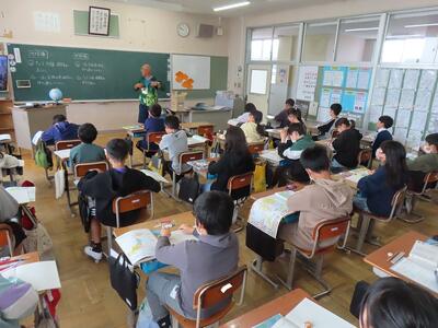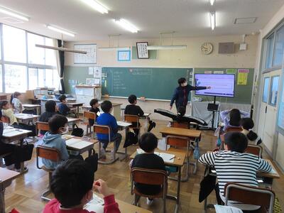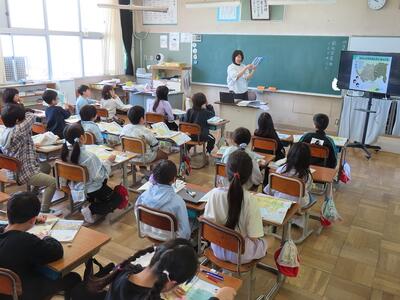 3年1組は,社会科の授業。はじめて3年生で行う社会科です。大田原市の形や市野沢小学校の位置について学習していました。