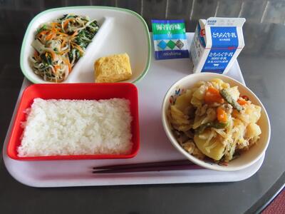 今日のまろやかみそ汁には、ざっと見ただけで、5種類もの野菜が入っていました。一品でこれだけの野菜が食べられる給食は、ほんとうにありがたいと思います。