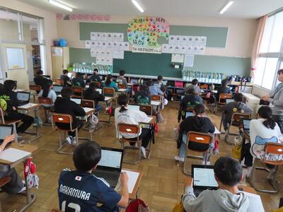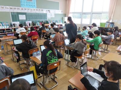 5年1組は、理科の授業で、「雲」について学習していました。教務主任の授業で子供たちは新鮮な雰囲気で話を聴いていました。