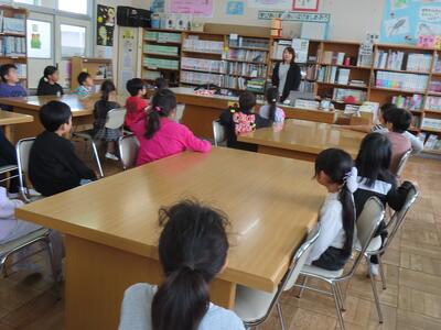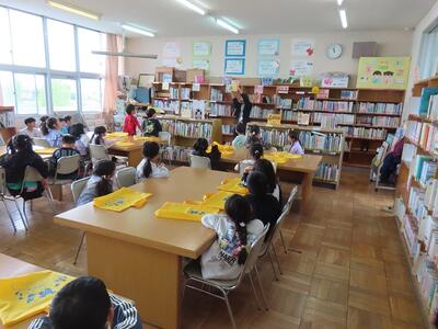 22日(水)1校時に1年生の学校探検がありました。職員室や校長室、その他の特別教室をグループになって見て回りました。校長室に入ってきた子供たちは、「トロフィーがいっぱいある~」や「ソファーもある~」など感想を言ってくれました。