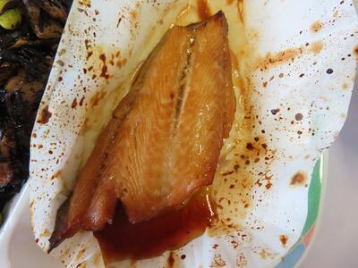 ぎんダラのてりやきは、初めて給食に出るメニューです。とても香ばしいかおりが食欲を誘います。