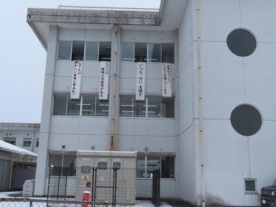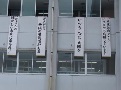 毎年恒例になった卒業生への餞のメッセージを掲示しました。天気が悪く掲示できるか心配していましたが、なんとか掲示できました。