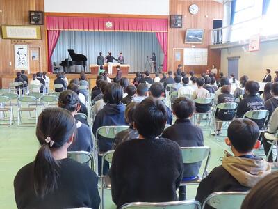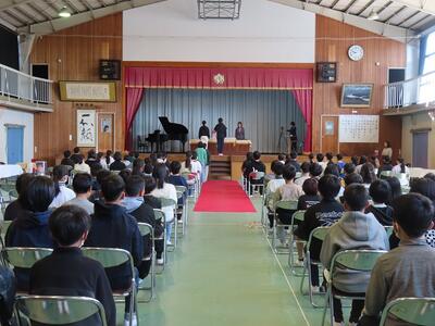 12日(木)2校時から卒業式予行練習を行いました。5、6年生が参加しましたが、さすがに高学年。