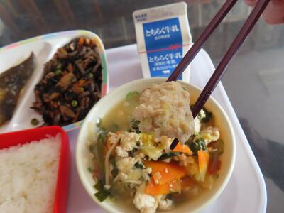 今日の根菜のごまじるには、4種類の根菜が入っています。子どもたちが家に帰ったら、どんな根菜が入っていたかぜひ聞いてみてください。覚えていたらうれしいですが……