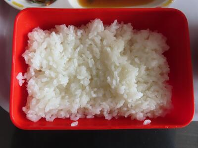 今日は、5年生が田植え、稲刈り、草刈りをしてくれたお米が給食に出ます。一口一口味わっていただきます。