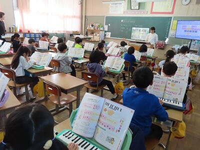 1年生は、音楽科の授業で、「なかよし」という教科書にでてくる曲を鍵盤ハーモニカで演奏していました。素敵な音色でした。2年生は、生活科の授業で地域に訪れる「まちたんけん」の事前学習でした。訪問先への質問事項を各グループごと話し合ってきめていました。2年生も立派に理由を付けて話し合いをすることができていまいた。