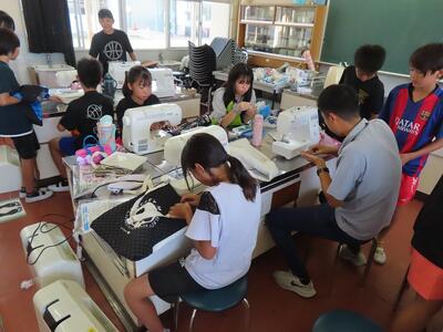 トートバッグ作り 投稿: 校長 (09/30) 30日(火)5、6校時は、6年2組の家庭科:トートバッグ作りでした。 もちろん今回もミシンボランティアの外部講師の方も来てくださいました。 アイロンをあて、縫いやすくなったところを慣れた手つきで縫っている子もいました。 ほとんどの子どもたちが、持ち手を縫い付けるところまで終わりました。 ミシンボランティアの先生にあらためて感謝です。ありがとうございました。