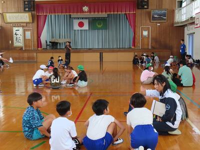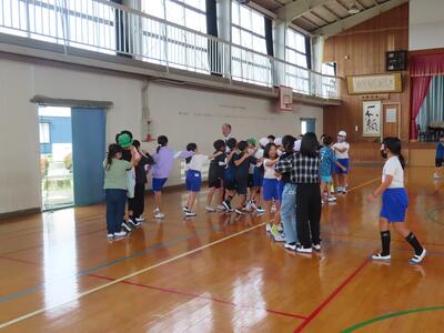小小連携事業 投稿: 校長 (10/03) 3日(金)2校時~3校時の時間に羽田小学校との小小連携事業を実施しました。 お互いに交流を深めることを目的として、4年生が実施しました。今回は、羽田小学校の5名が来てくれました。体育館では、おしゃべりタイムをもうけたりじゃんけん列車をしたりしました。その後、校舎案内をしたり校庭に出てドッジボールしたりして汗を流しました。お互いに再会を約束して終了しました。目的は十分に果たした楽しい時間でした。
