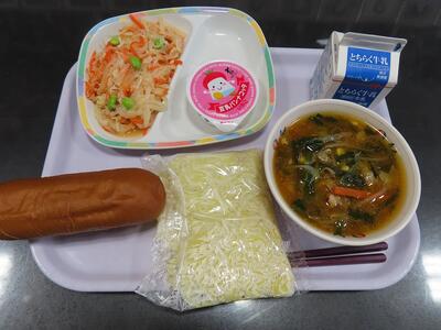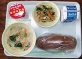 本日の給食の献立 投稿: 校長 (11:56) 3日(水)給食の献立は、くろパン、みそラーメン、(パックめん、スープ)、バンバンジーサラダ、とうにゅうパンナコッタ(いちごソース)※くろパンの配布は、献立予定表では、3年生以上となっていましたが、栄養価計算上の都合により5年生以上となります 今日は、給食としては珍しいみそラーメンの給食です。一口一口味わっていただきます。