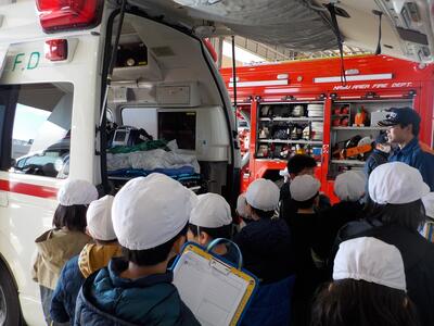 12月9日、3年生が社会科見学で大田原消防署、大田原警察署、JAなすの大田原青果物総合集出荷場を訪れました。大田原消防署では、消防車や救急車に備わっている様々な種類の道具や器具を見せていただきました。大田原警察署では、警察職員の方々の仕事を教えていただいたり、パトカーの内部の様子を見せていただいたりしました。JAなすの大田原青果物総合集出荷場では、近隣地域で作られている野菜や果物、花の種類を教えていただいたり、いちごが運ばれてきた後の工程の様子を見せていただいたりしました。