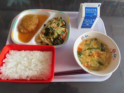 本日の給食 投稿: 校長 (11:59) 13日(月)給食の献立は、ごはん、ぎゅうにゅう、ハンバーグのおろしソースかけ、わふうサラダ、かきたまじるです。 今日もいろいろなことに感謝しながらいただきます!