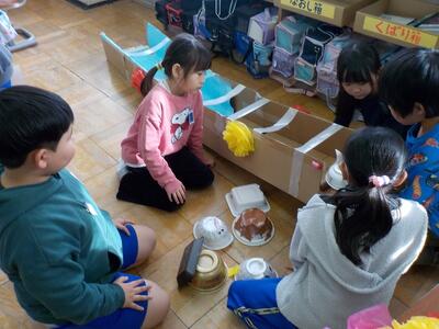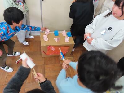 子供たちは、縁日の屋台をまわるように、それぞれのおもちゃのところをまわって交流し合っていました。